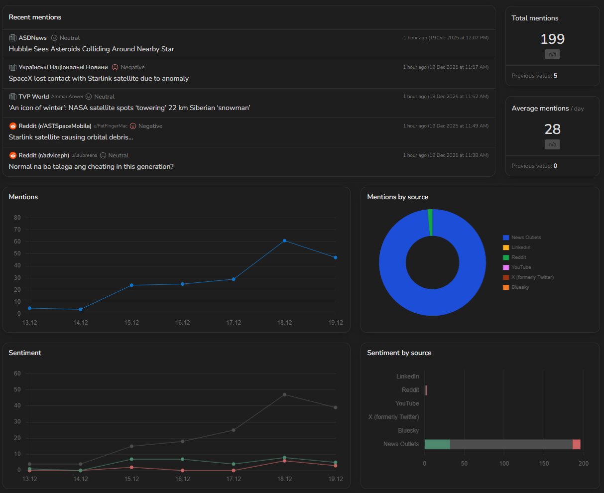 A marketing team can set up a project to monitor market-relevant developments, then configure dashboards for this project. With analytics, they can watch trend shifts over short periods of time to look out for big spikes in attention. Noticing such a spike, the marketing team can capitalize on this increase in attention in multiple ways, depending on the situation: