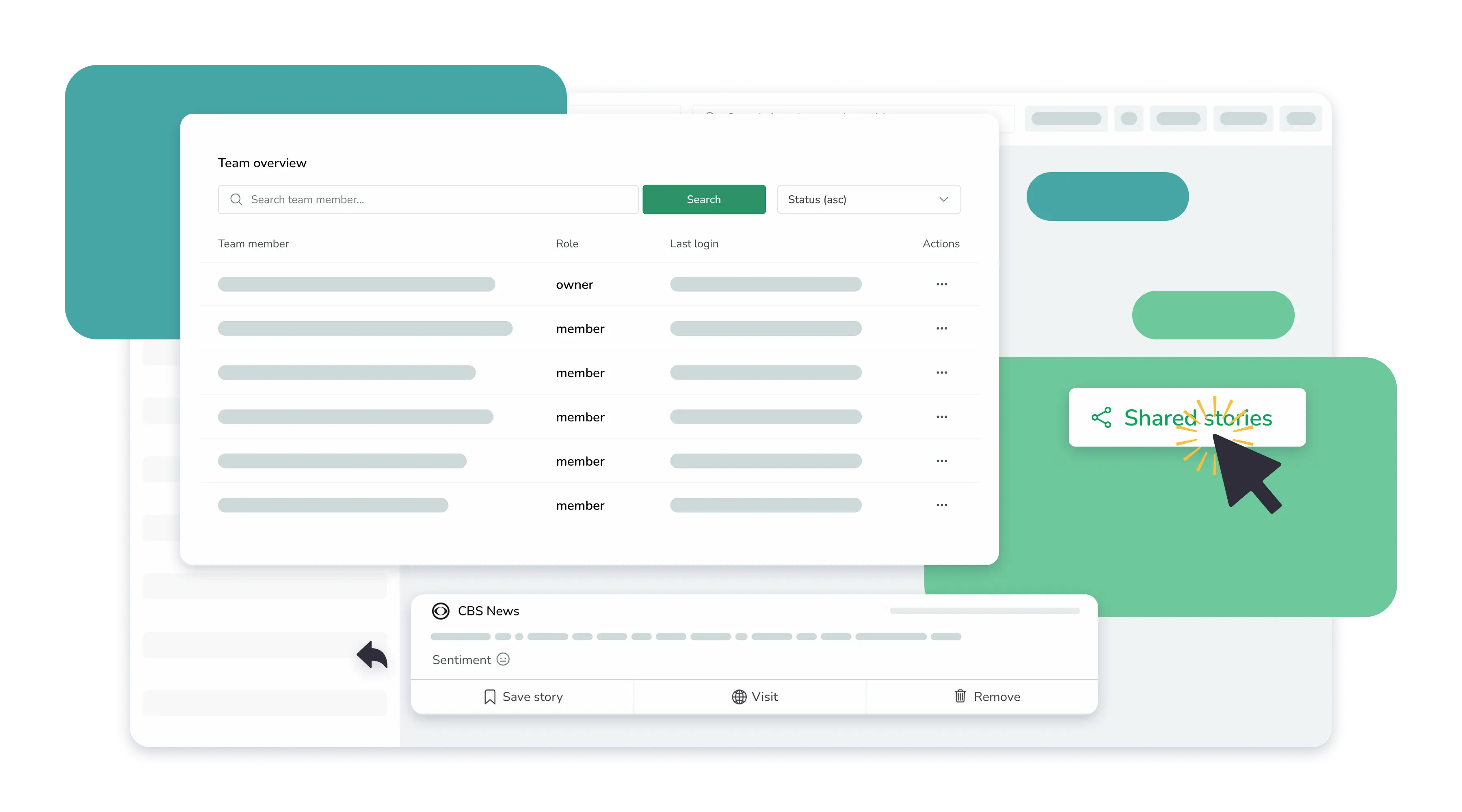 Collaborative features centralize updates, insights, and feeds, which ensures that every team member works from the same information. This reduces knowledge fragmentation and increases workflow efficiency as team members do not need to constantly share surfaced stories and extracted insights.