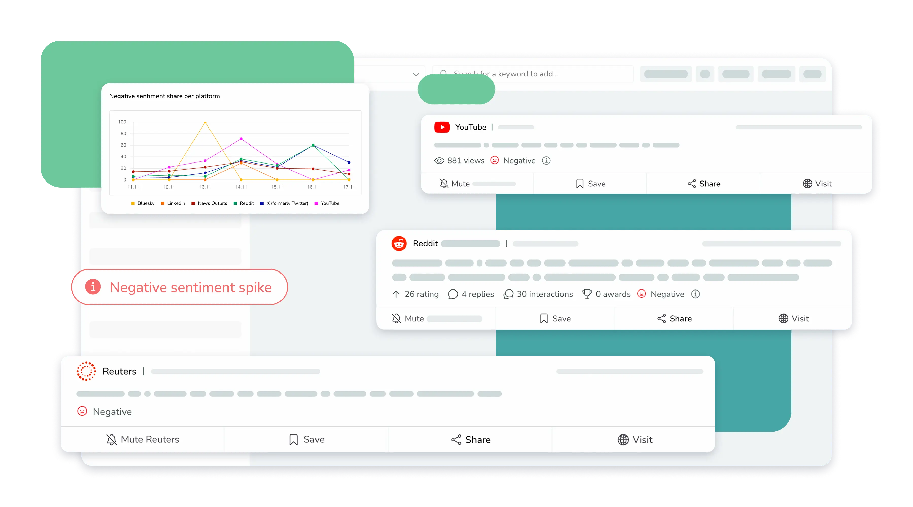 It gives your organization a clear, real-time view of negative coverage and social media activity, enabling you to develop an effective crisis response strategy by prioritizing the most important discussion topics and sources.